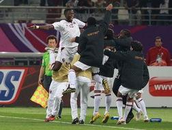 卡塔尔队的守门员反应迅速,扑向了球门,但球的速度太快了,他只能眼睁睁地看着球飞入网窝。那一刻,整个球场都沸腾了,观众们纷纷站起来,挥舞着手中的旗帜,欢呼雀跃。